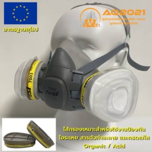 หน้ากากกันแก็ส ป้องกันไอระเหย สารตัวทำละลาย และกรดแก๊ส มาตรฐานยุโรป